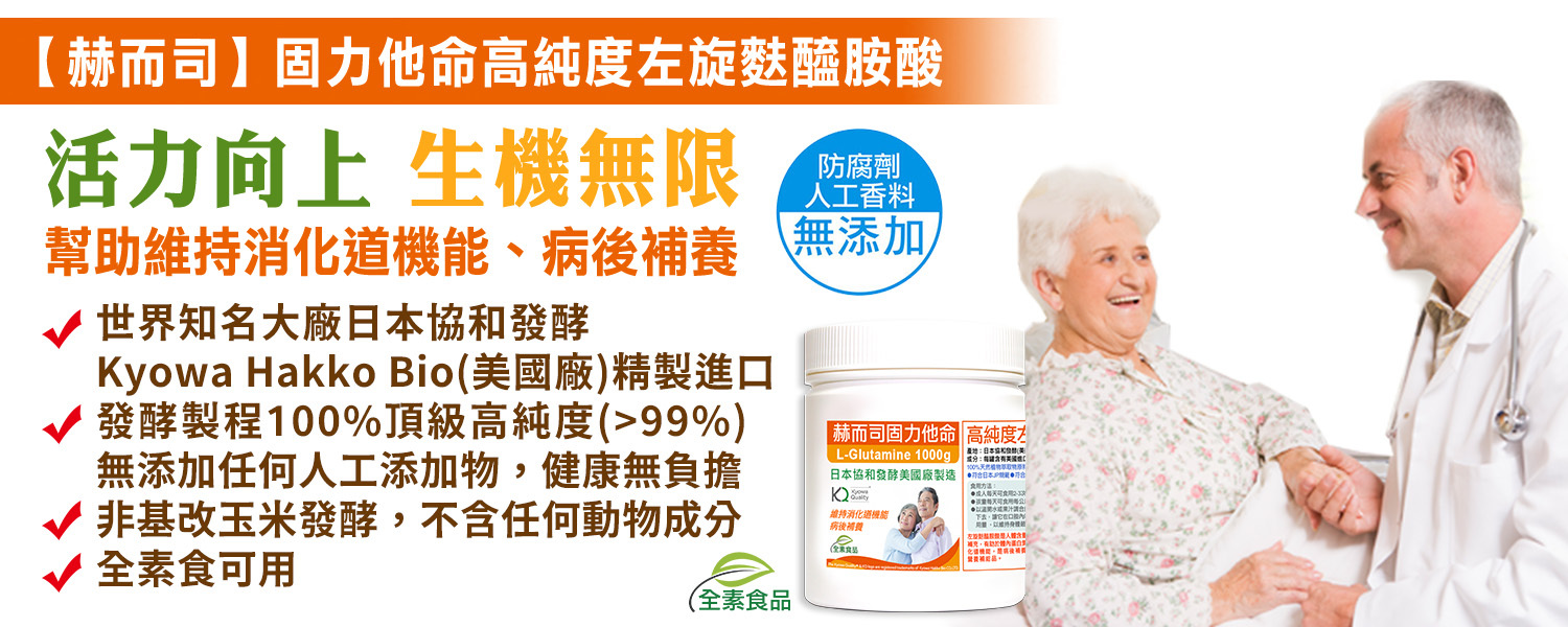 病後補養:麩醯胺酸消耗速度快,濃度偏低者可以營養補給,維持健康狀態。