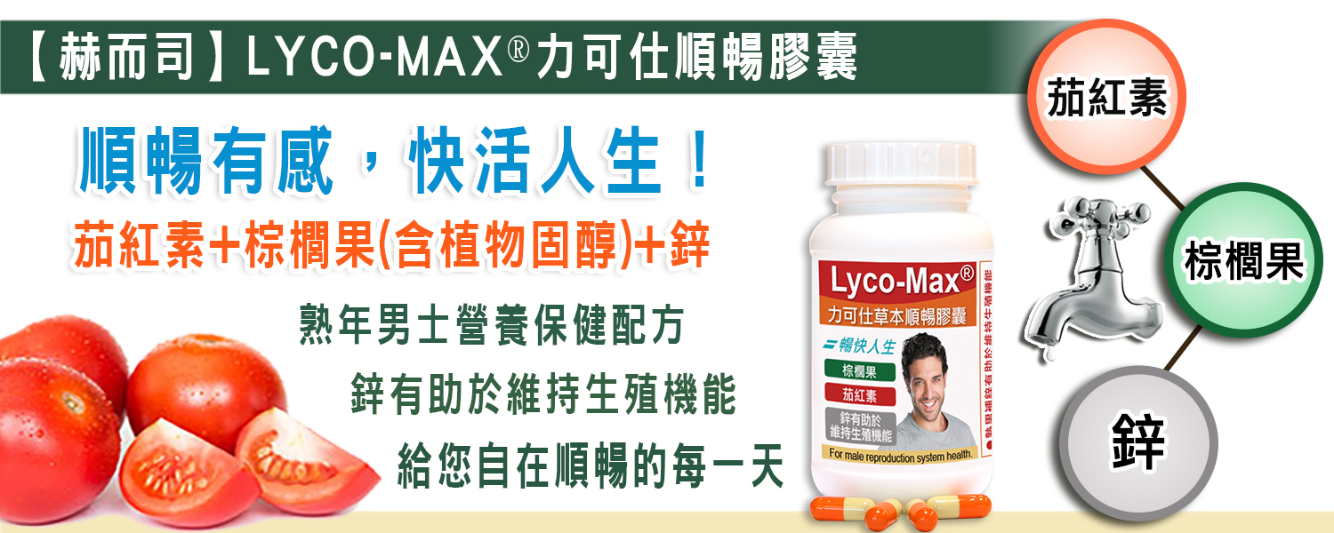 ●番茄抽出物(含茄紅素)+棕櫚果(含植物固醇)+鋅有助於維持生殖機能
