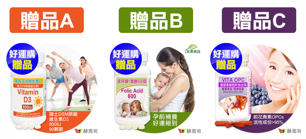 贈品A:【健康有感】瑞士陽光D3(90錠*1罐)