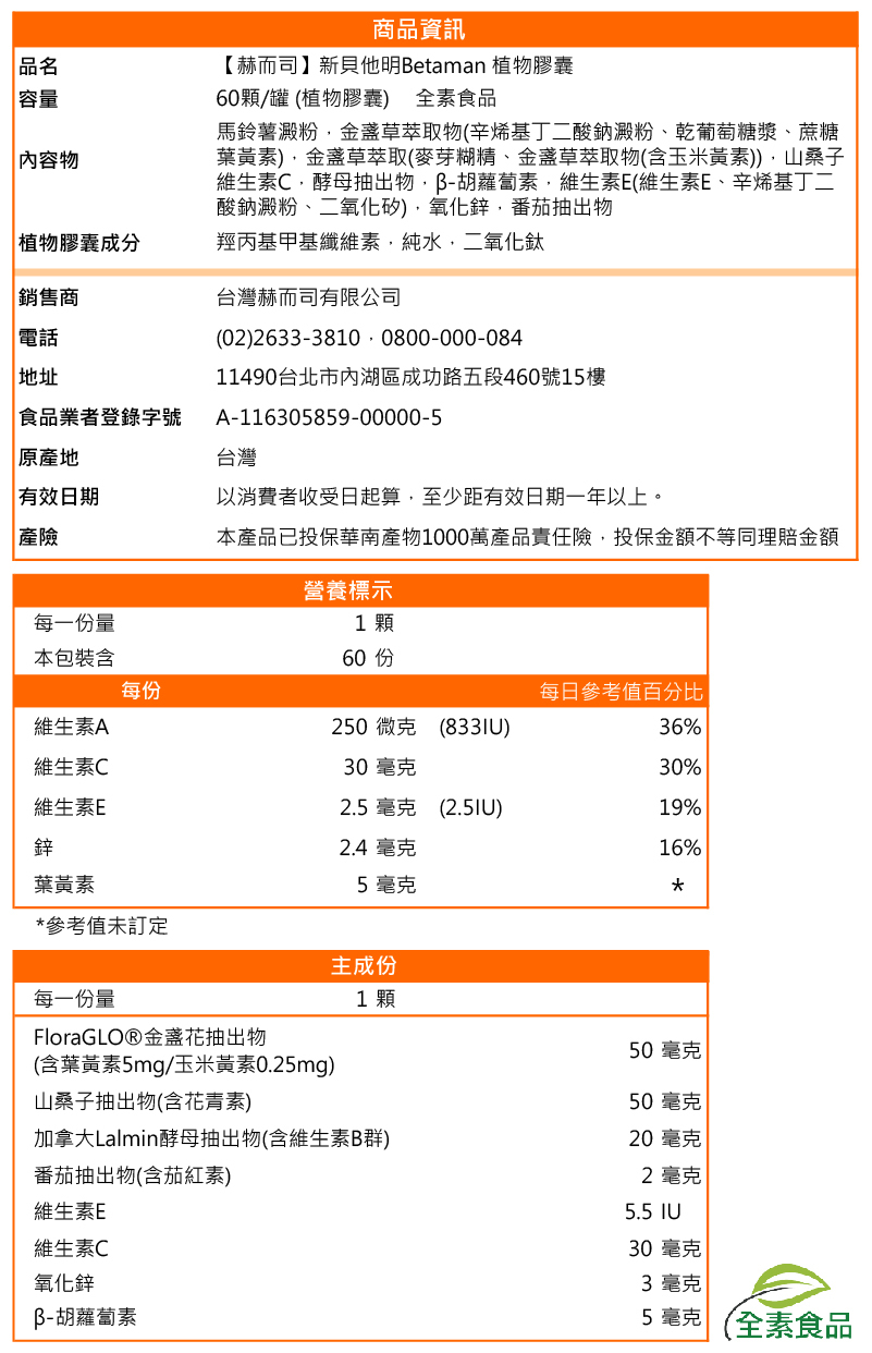 【新貝他明】美國Kemin小分子游離葉黃素山桑子16合1全素膠囊(60顆*1罐)