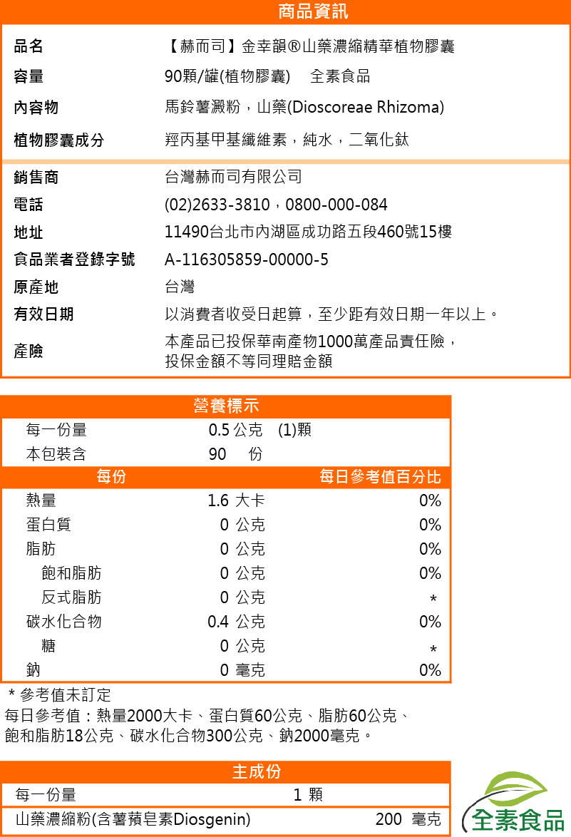 2️⃣ 【金幸韻®】山藥濃縮精華全素食膠囊(90顆*1罐)