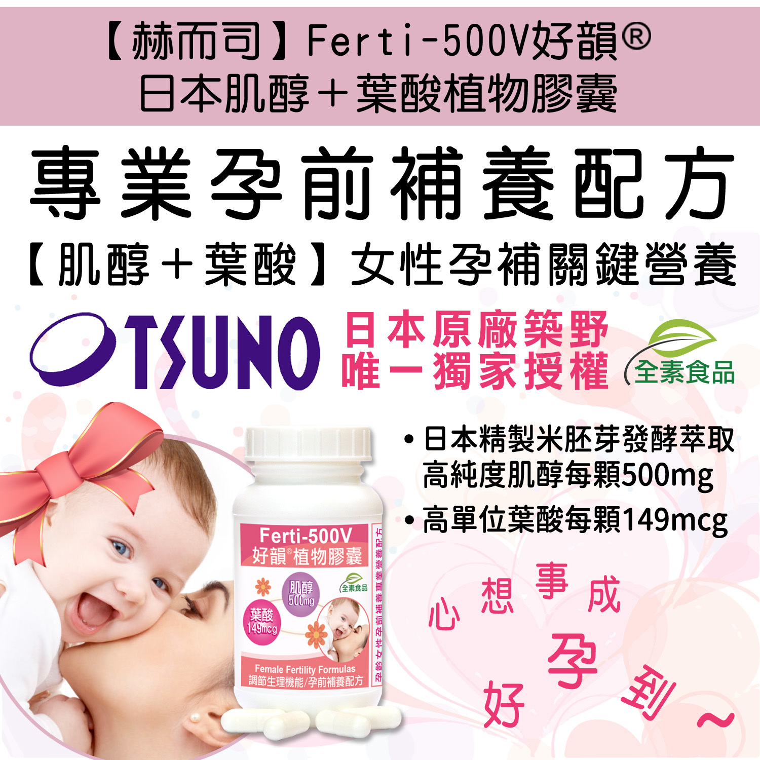 1️⃣ 【好韻®】日本築野肌醇+葉酸全素膠囊(90顆*1罐)