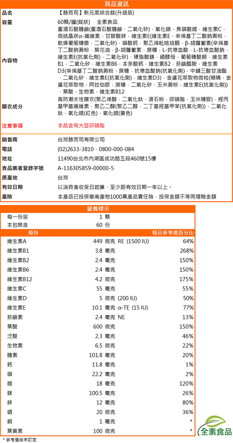 1️⃣【新元氣綜合錠™升級版】BIO-ENERGY全方位綜合全素食維他命(60顆*1罐)
