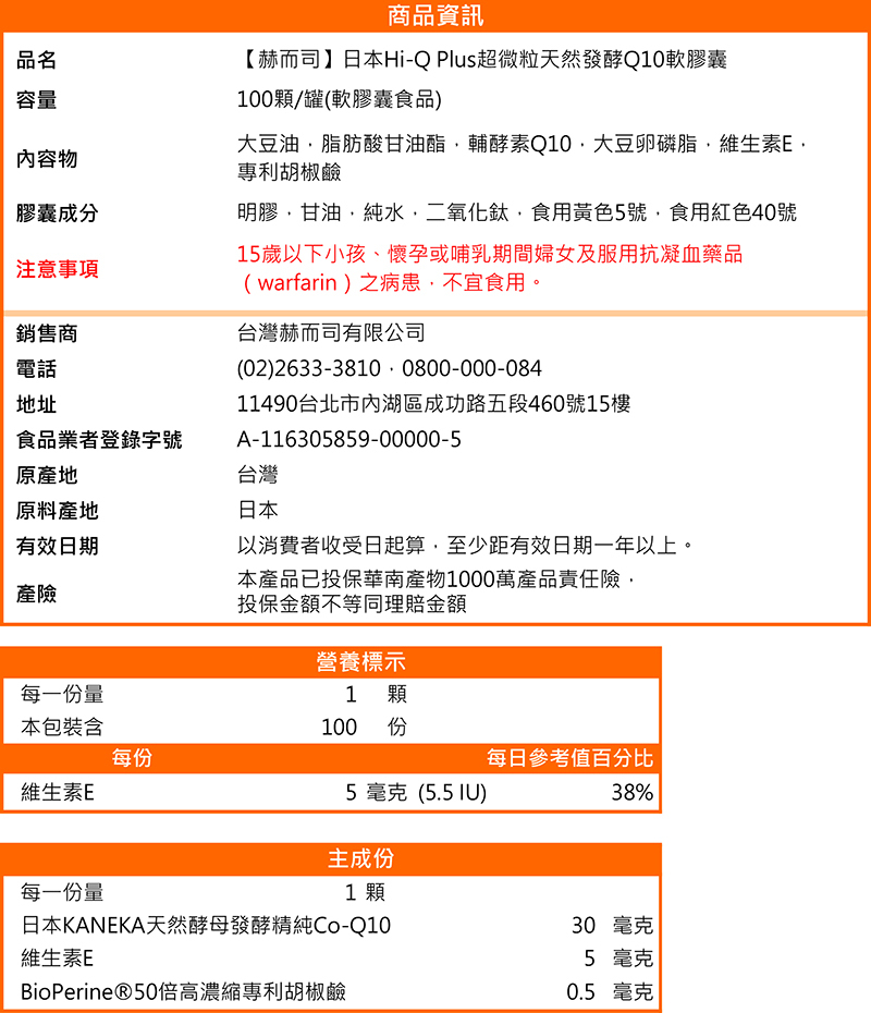 強效配方:日本鐘淵KANEKA發酵精純Q10+BioPerine®美國專利胡椒鹼