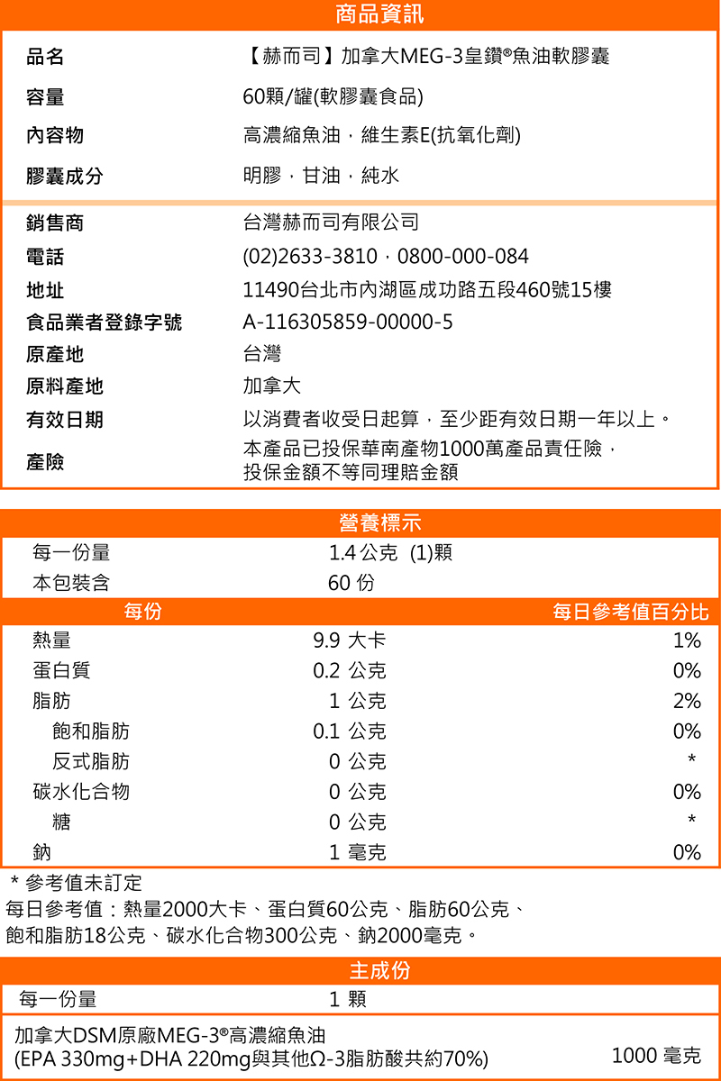 ●品質全新升級-全球領導品牌原料-加拿大DSM精製MEG-3®魚油
