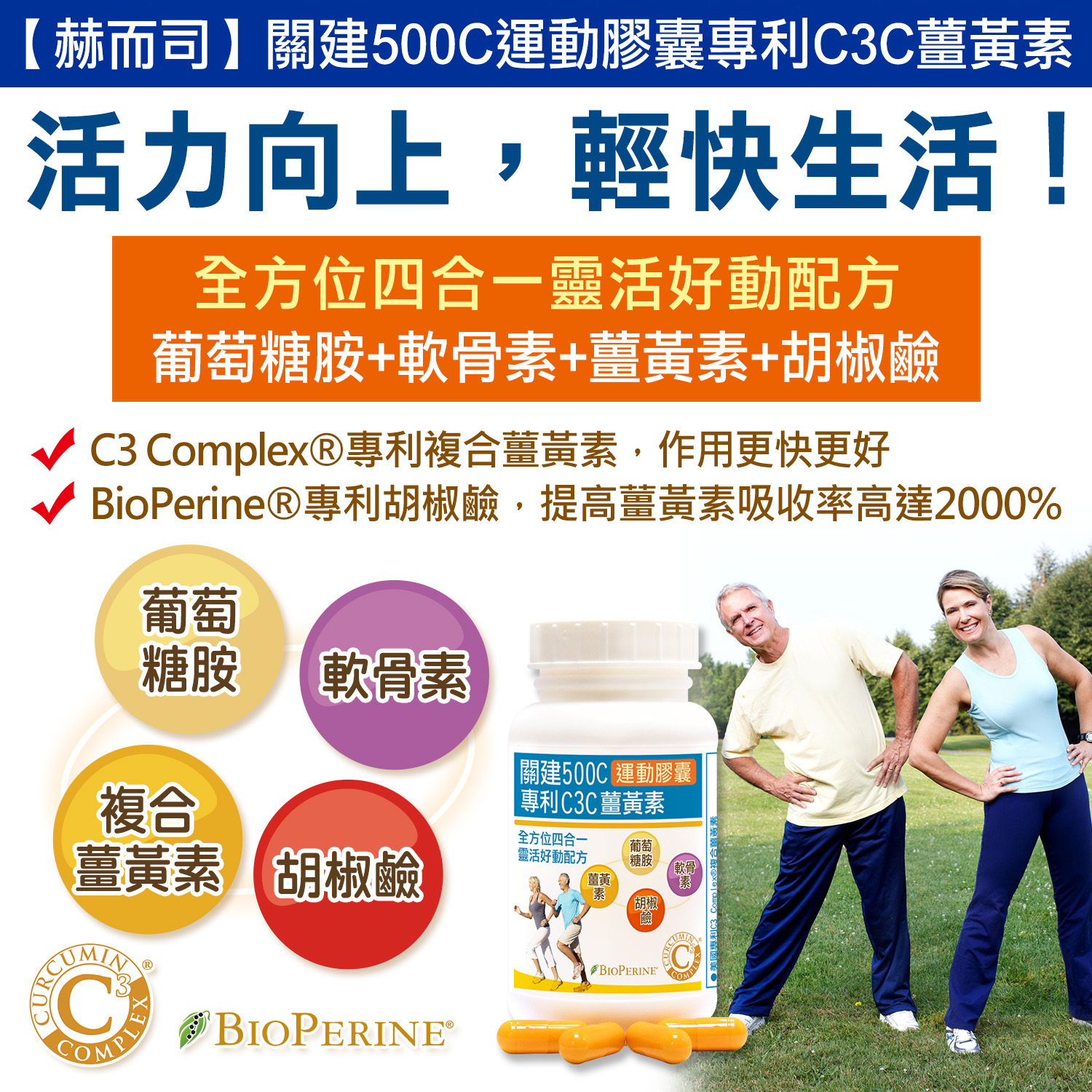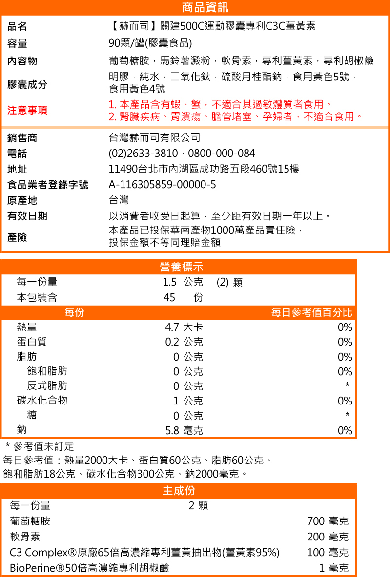 1️⃣關建500C運動膠囊專利C3C薑黃素(90顆*1罐)