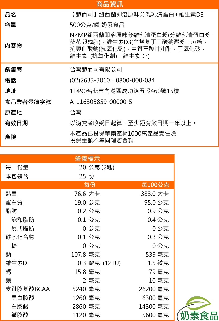 1️⃣NZMP紐西蘭即溶原味分離乳清蛋白粉+維生素D3(500公克*1罐)