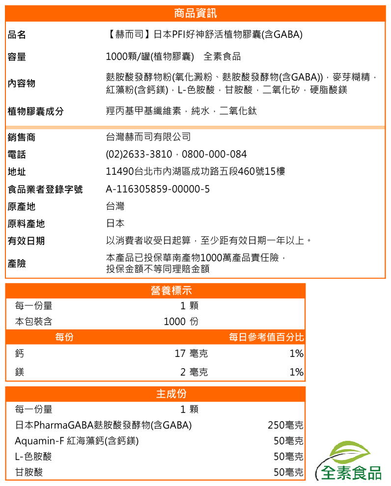 | 日本PFI原廠麩胺酸發酵物粉PharmaGABA (含高濃度20% γ-胺基丁酸) |