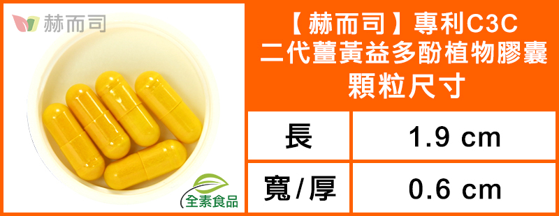 | 品名 | 【赫而司】專利C3C二代薑黃益多酚植物膠囊 |