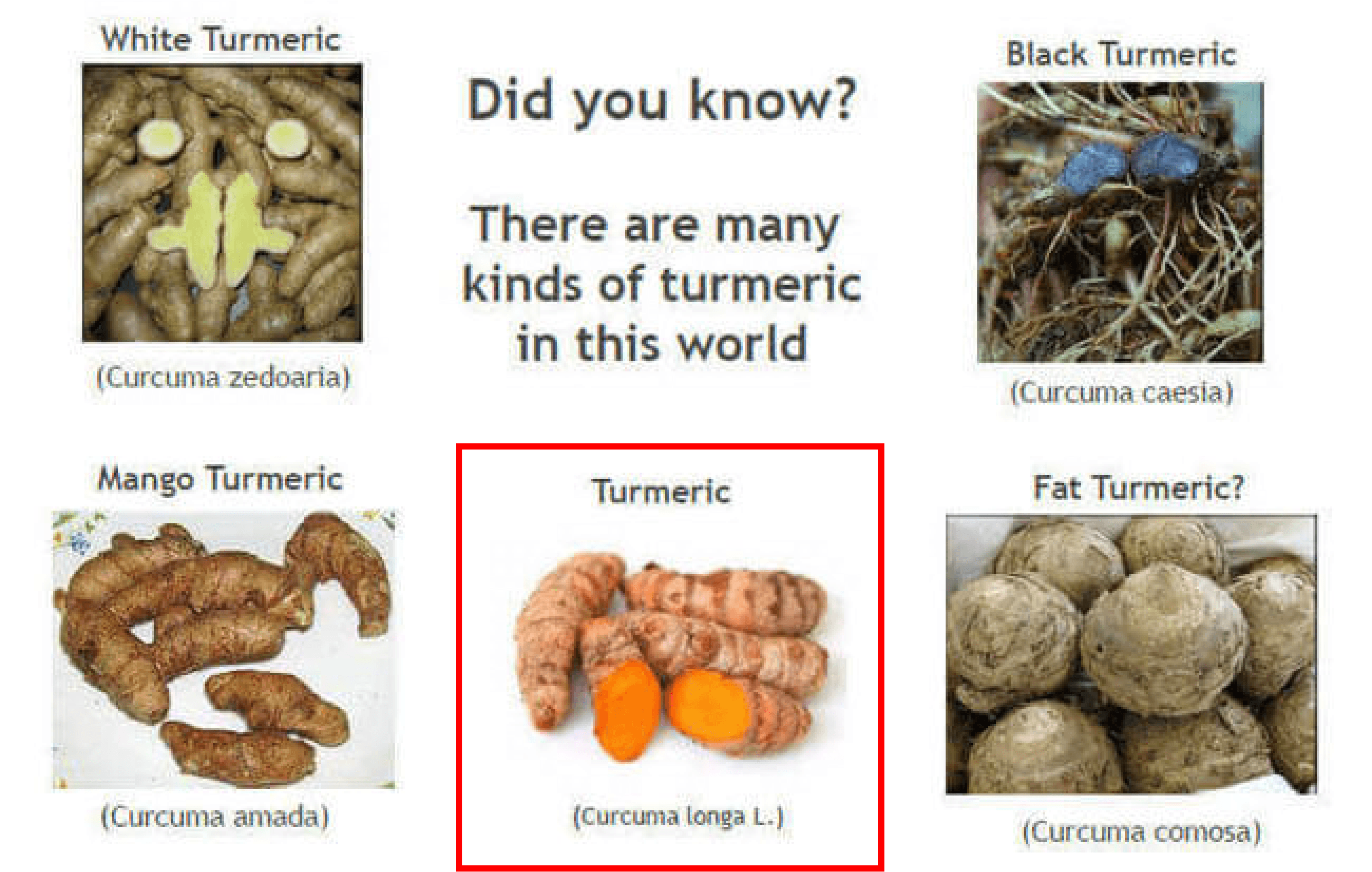 一般香料用的薑黃粉使用薑黃指根(Tumeric Finger),薑黃素含量只有1-2%。