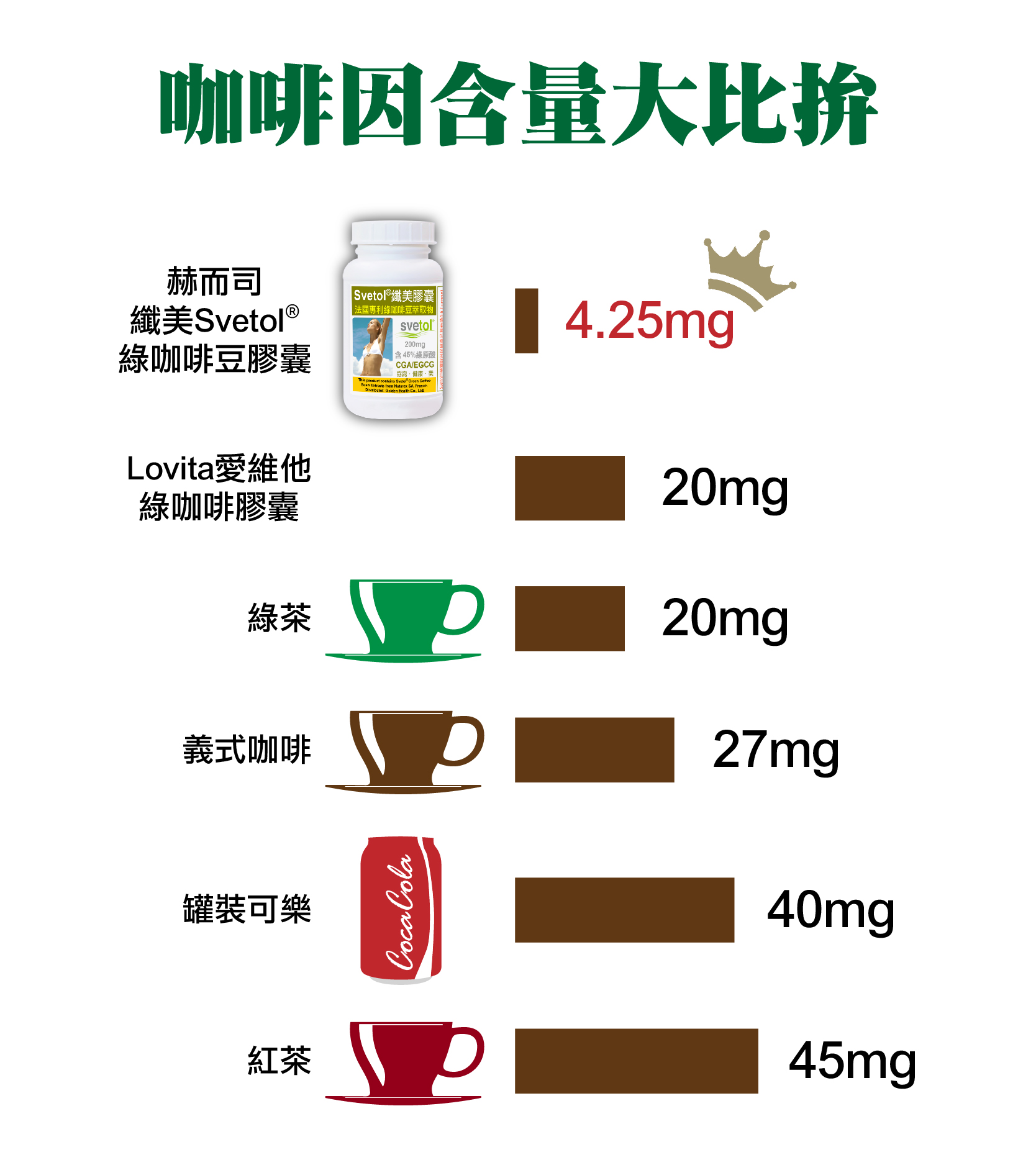 赫而司的【纖美Svetol®】法國專利綠咖啡豆是綠咖啡專利萃取物含有>45%綠原酸,人體可以輕易吸收有效成份,食用上比較能達到定量,也較方便食用。